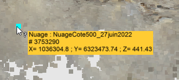Cette fonctionnalité permet d'obtenir des informations détaillées sur un point de nuage situé sous la souris.